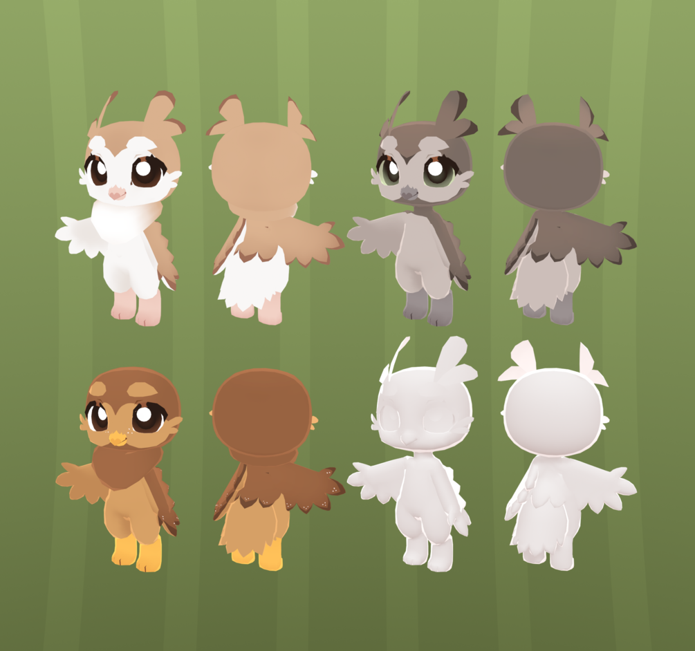 You'll get a unity package with Owlet set up and ready to use in VRChat, and the necessary files in order to customize this little guy to your preference, all for a minimum of $20!